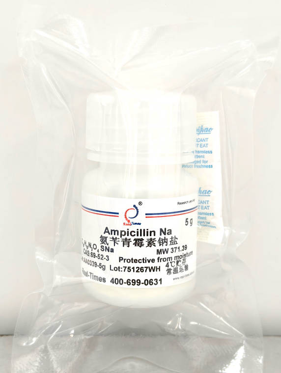 說明:A β-lactam antibiotic with an amino group side chain attached to the penicillin structure. Penicillin derivative that inhibits bacterial cell-wall synthesis (peptidoglycan cross-linking) by inactivating transpeptidases on the inner surface of the bacterial cell membrane. Mode of resistance: Cleavage of β-lactam ring of ampicillin by β-lactamase. Antimicrobial spectrum: Gram-negative and Gram-positive bacteria. Stock solution: 100mg/ml. Recommended for use in molecular biology applications at 20-50 μg/ml.