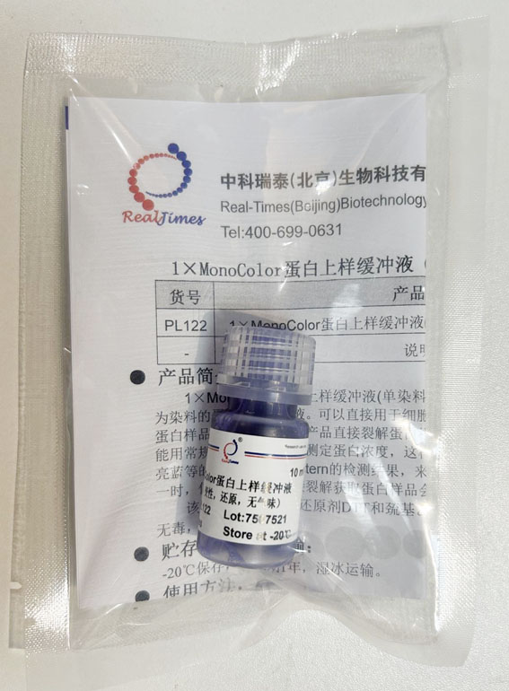 1×MonoColor蛋白上樣緩沖液(單染料,變性,還原,無氣味)是一種經(jīng)過改良的以溴酚藍為染料的蛋白上樣緩沖液??梢灾苯佑糜诩毎蚪M織樣品的裂解,并用于后續(xù)常規(guī)的SDS-PAGE蛋白樣品的上樣。使用該產(chǎn)品直接裂解蛋白樣品的優(yōu)點是比較便捷;缺點是裂解好的蛋白樣品不能用常規(guī)的蛋白定量方法測定蛋白濃度,這樣蛋白上樣量的均一性就較難控制,需要借助考馬斯亮藍等的染色結(jié)果或Western的檢測結(jié)果,來調(diào)整上樣量。當細胞量或組織用量能控制得比較均一時,使用本裂解液直接裂解獲取蛋白樣品會比較便捷。