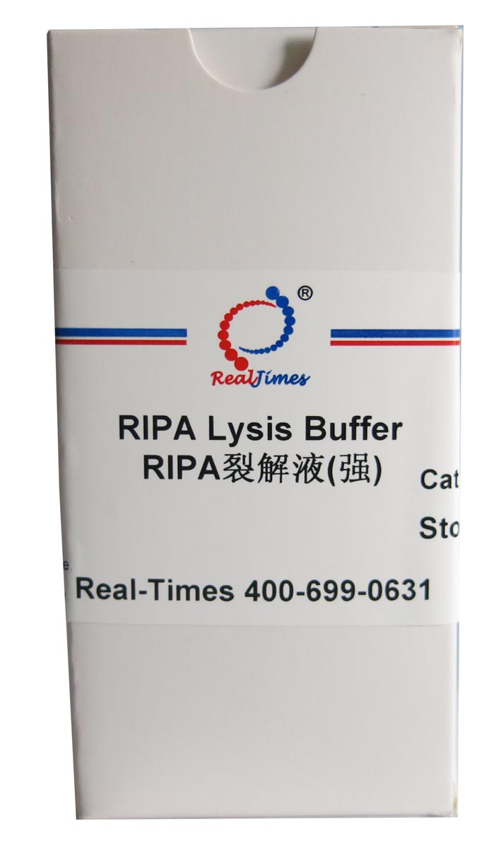 Buffer)是一種傳統(tǒng)的細(xì)胞組織快速裂解液。RIPA裂解液裂解得到的蛋白樣品可以用于常規(guī)的Western、IP等。RIPA的本意是Radio Immunoprecipitation Assay。RIPA裂解液的配方有很多種,根據(jù)其裂解液的強度大致可以分為強、中、弱三類。RIPA裂解液(中)的主要成分為Tris