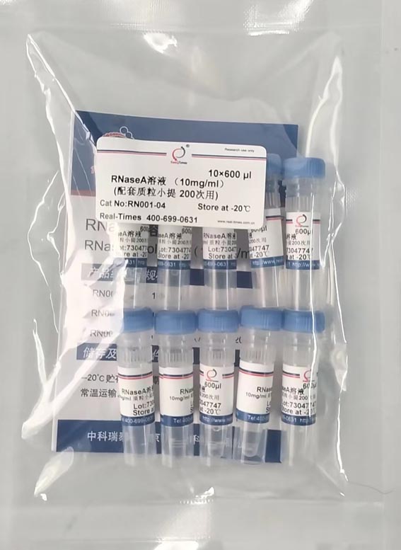 RNaseA在質(zhì)粒中的終濃度推薦為100μg/ml,即在質(zhì)粒溶液中按照1/100體積加入10mg/ml RNaseA即可,如50μl質(zhì)粒中加入0.5μl RNaseA溶液,37℃孵育10分鐘。