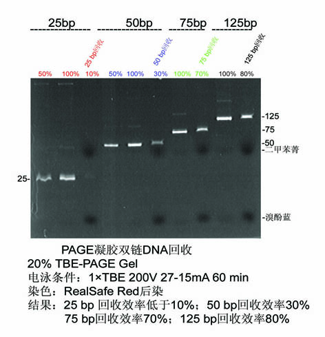 PAGE電泳后染色觀察DNA 并確定需要回收的DNA 條帶的位置,確保目的DNA片段與其他片段分開(kāi)。