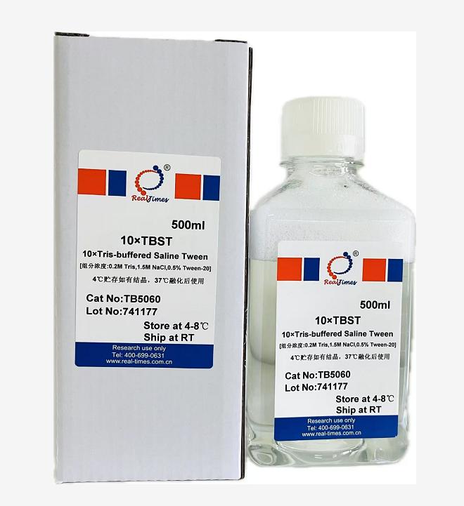 本產(chǎn)品為10×母液,用前用蒸餾水稀釋為1×TBST, pH =7.4-7.6,可用于Western Blot中洗膜使用,組化過程中的清洗以及抗原修復(fù)。0.22 μm濾膜過濾純化。